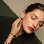 The PENTAGON shape represents balance and harmony. Adorned with sparkling diamonds, these earrings symbolize clarity and brilliance, making them a perfect accessory for the empowered woman.