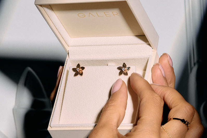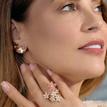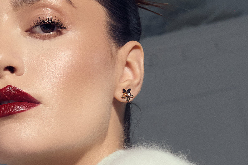 Wear it as a full flower, or let the diamond shine alone, as a classic stud.